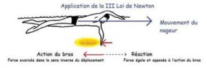 De la même manière, un nageur avance en poussant l’eau vers l’arrière. C’est la réaction de l’eau qui le propulse vers l’avant.